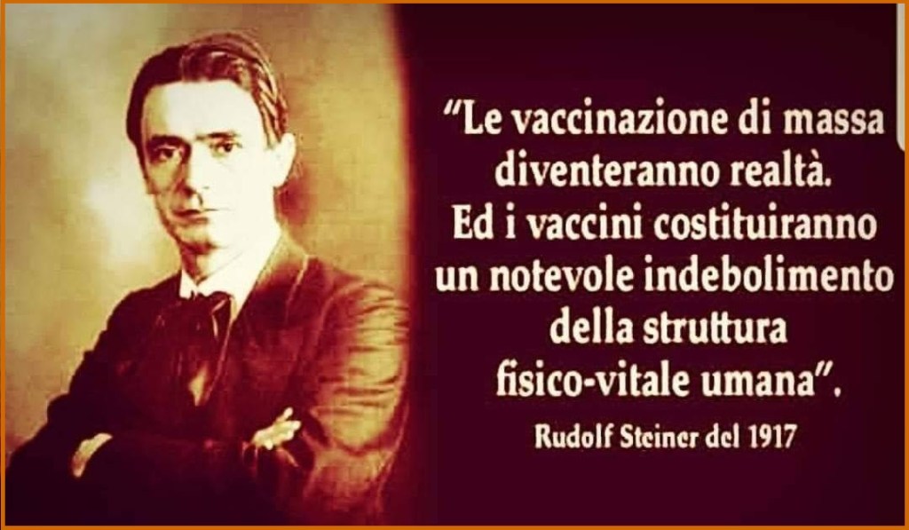 Questo ricorda molto da vicino la preveggenza di Rudolf Steiner, fondatore dell’Antroposofia, che, in una conferenza del 27 Ottobre 1917 sosteneva: “«Nel futuro si eliminerà l’anima per mezzo di farmaci. Con il pretesto di ‘un punto di vista salutare’ si troverà un vaccino mediante il quale l’organismo umano verrà trattato – quanto prima possibile, eventualmente direttamente alla nascita – in modo tale che l’essere umano non possa sviluppare il pensiero dell’esistenza di anima e spirito. Verrà affidato ai medici materialisti il compito di eliminare l’anima dall’umanità.